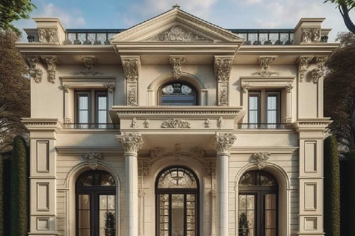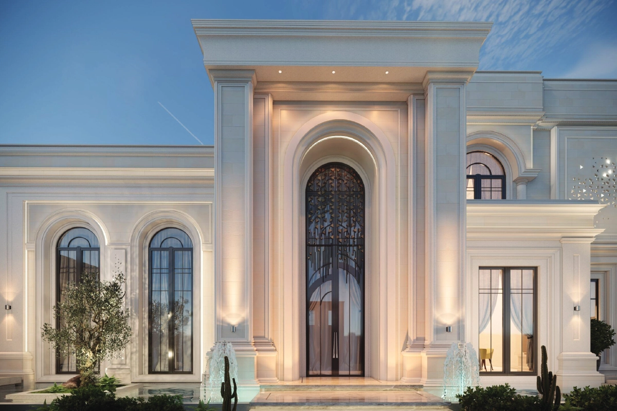 - قياس أبعاد كل جزء من واجهة الفيلا بدقة